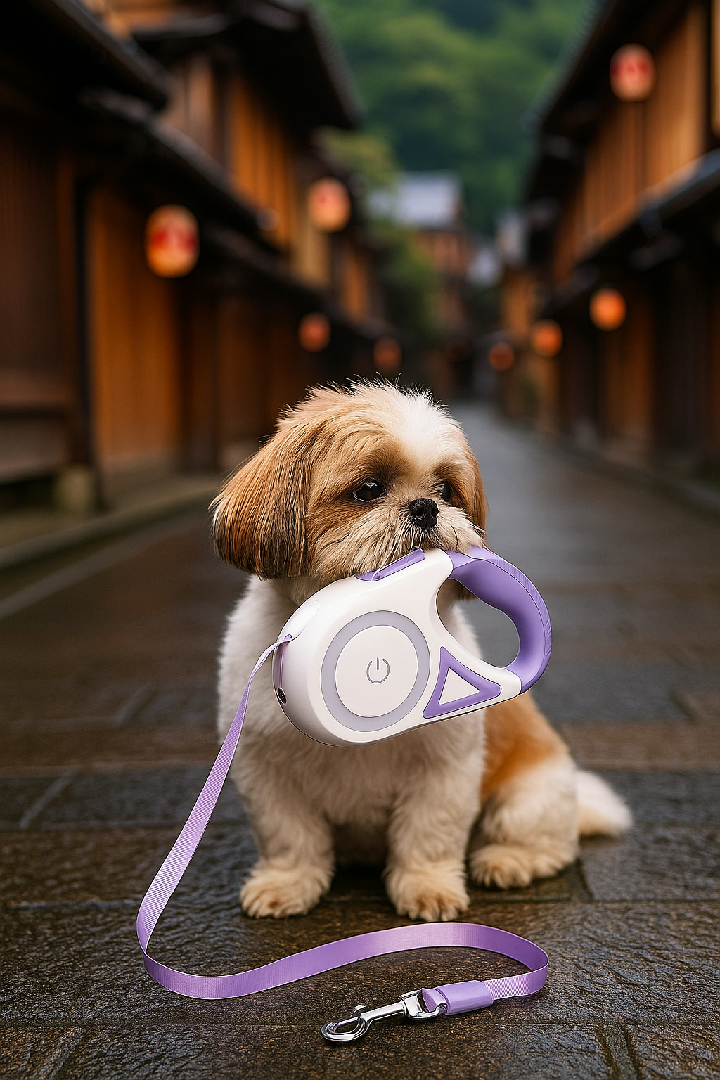 スポットライト付き伸縮ペット用リード&首輪セット|小型〜中型犬向け